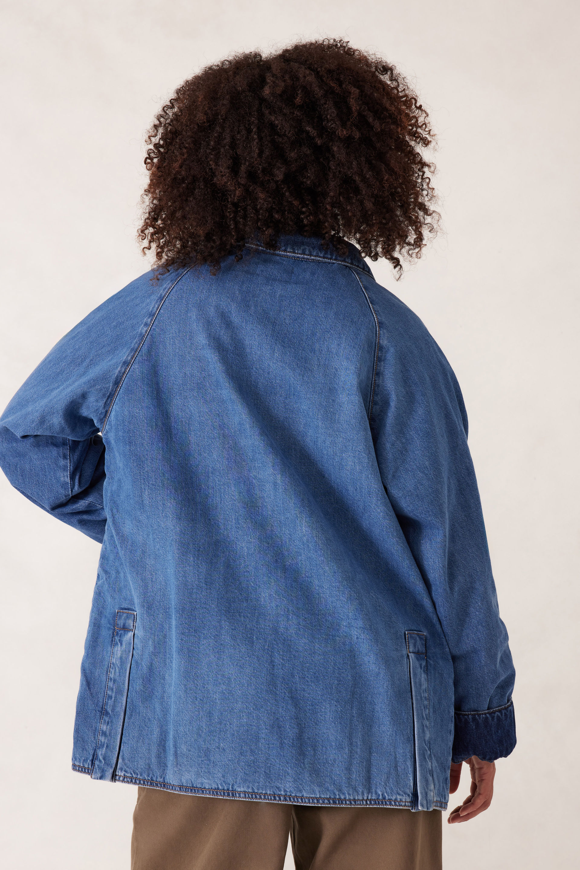 Introducing our Oversized Barn Jacket , crafted from 100% organic cotton with fully lined with a layer of wadding. This jacket will keep you cosy on those colder days. With a snap front closure and handy patch pockets, this jacket is both practical and effortlessly stylish. Plus, it's machine washable for effortless care – because life's too short to fuss over dry cleaning. Pair back with knitted pant for those morning coffee walks.