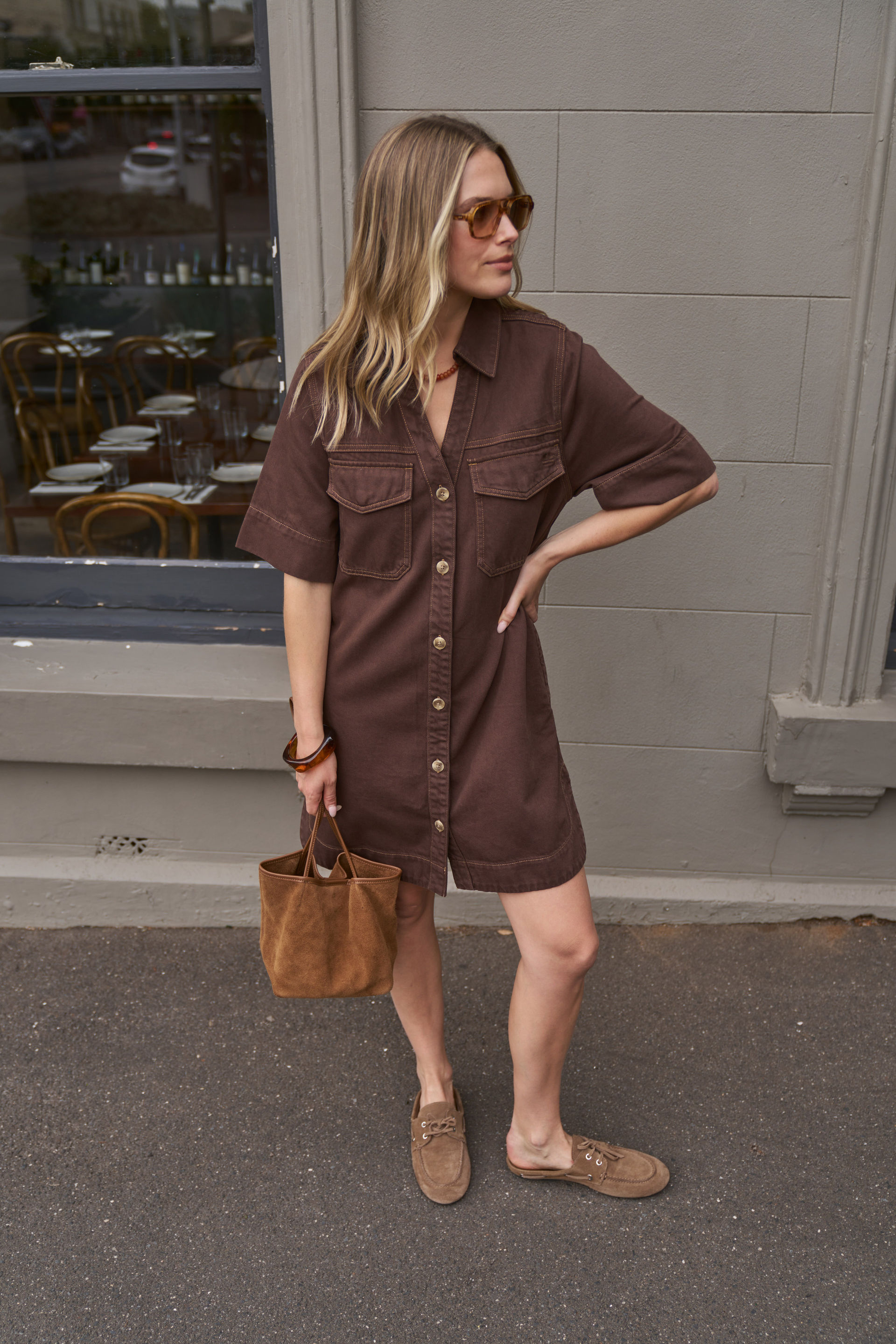 Bonnie Relaxed Shirt Dress, CHOCOLATE