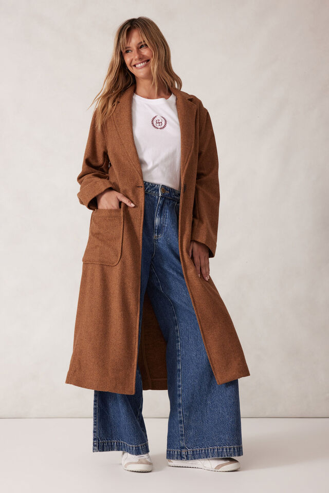 Introducing our Classic Longline Coat, the epitome of cosy chic. Crafted from a luxurious lightweight wool blend fabric, this coat boasts a slouchy longline fit and practical front pockets, perfect for layering in the cooler months. Its single breasted design and unlined structure with bound seams ensure a sleek inner finish.