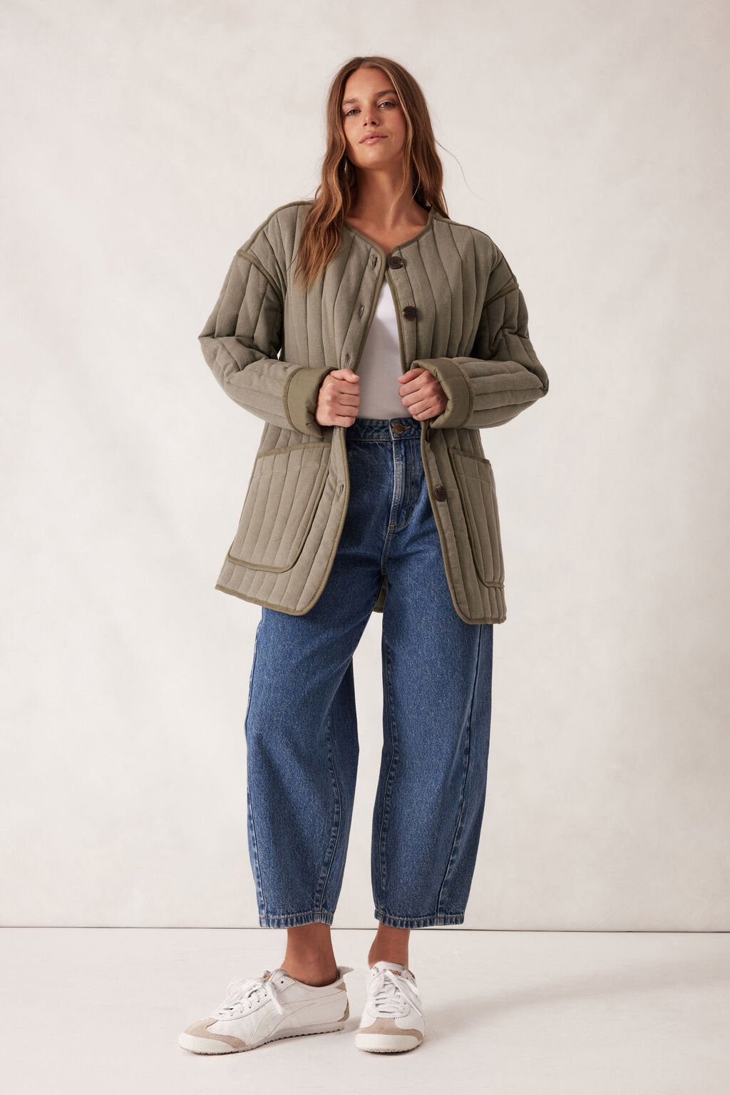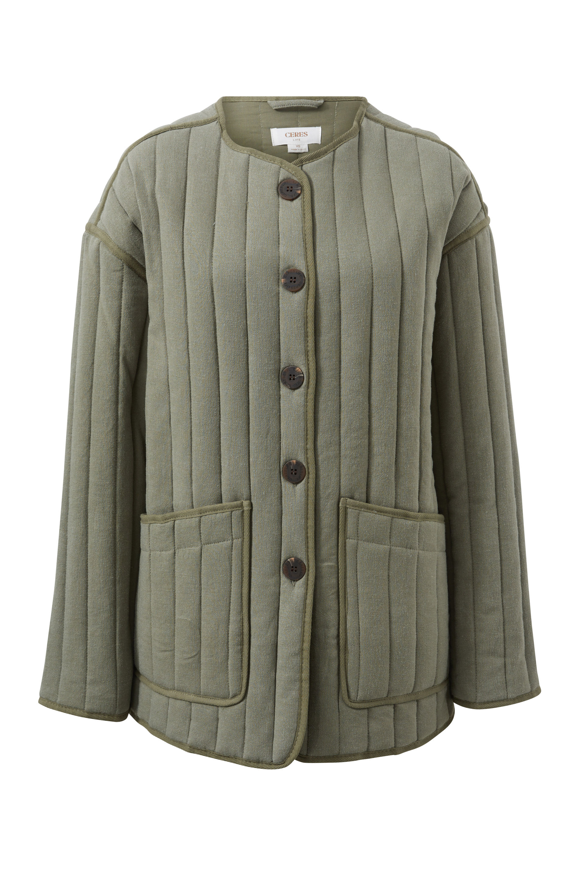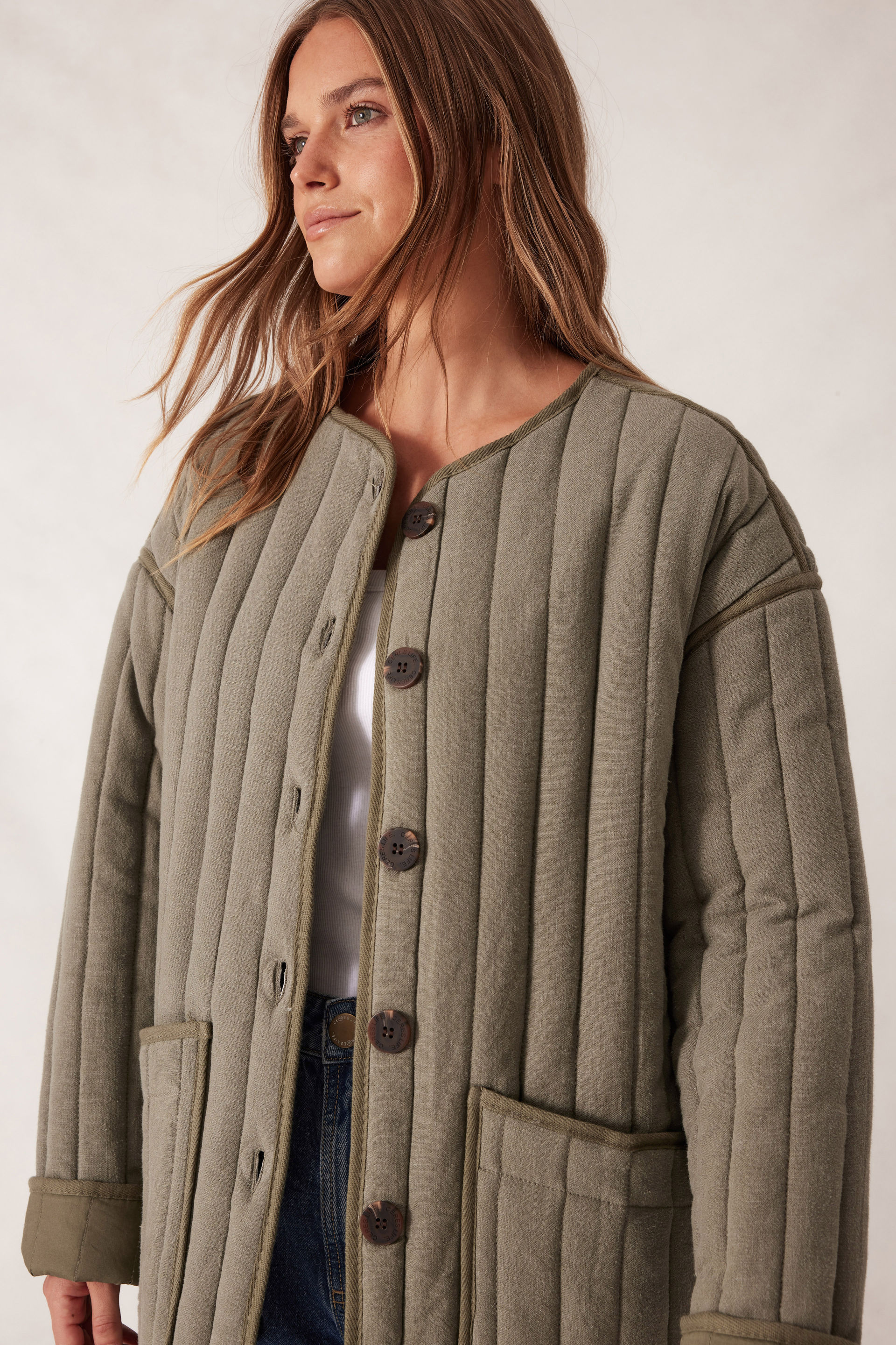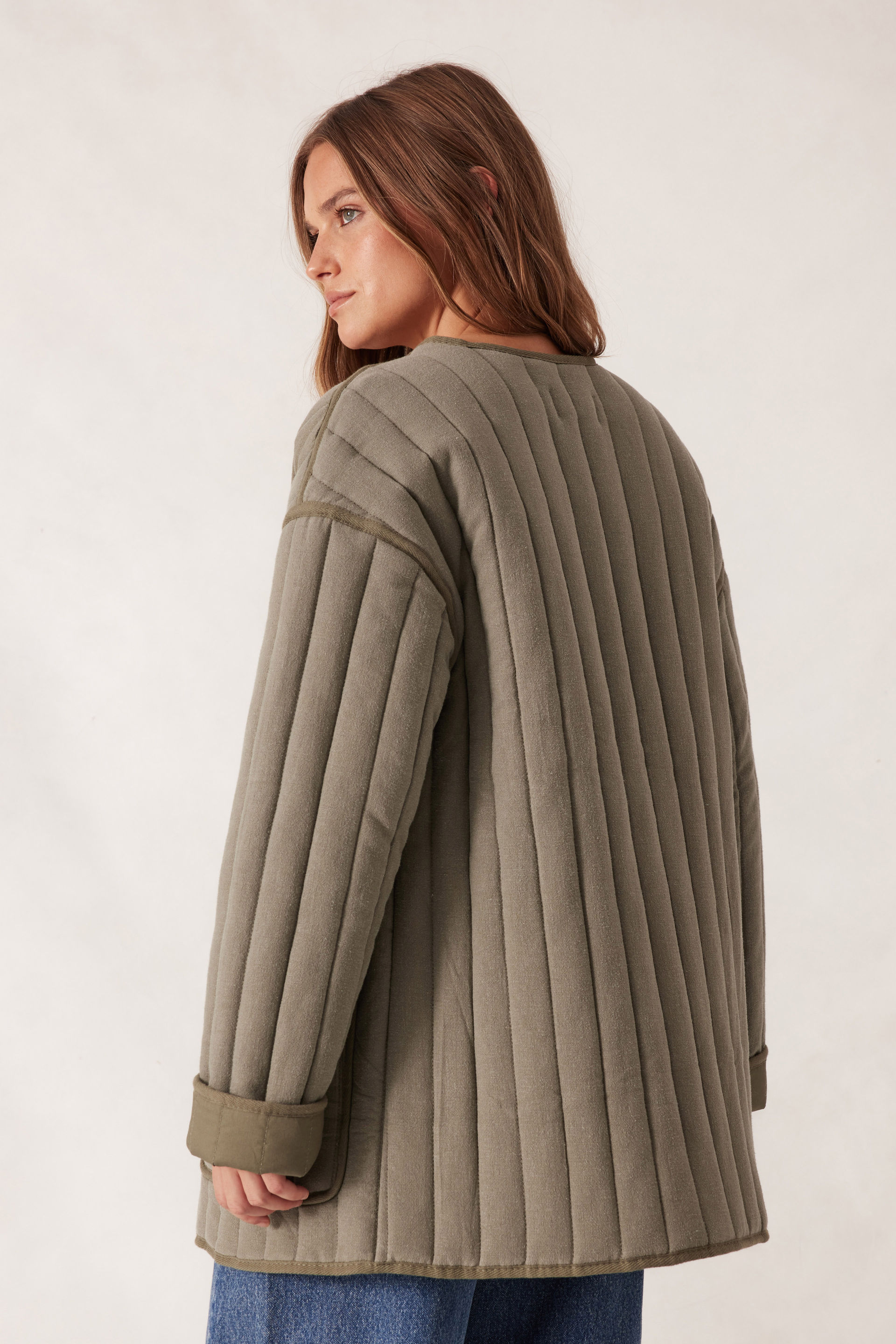 Introducing our Comfy Quilted Jacket, crafted from a textured linen blend outer and fully lined with a quilted design, complete with a layer of wadding to keep you cosy. With its relaxed fit, large front pockets, this versatile piece is perfect for layering over your favourite outfits. Whether you're off for a weekend away or a casual market stroll, this jacket has you covered.
