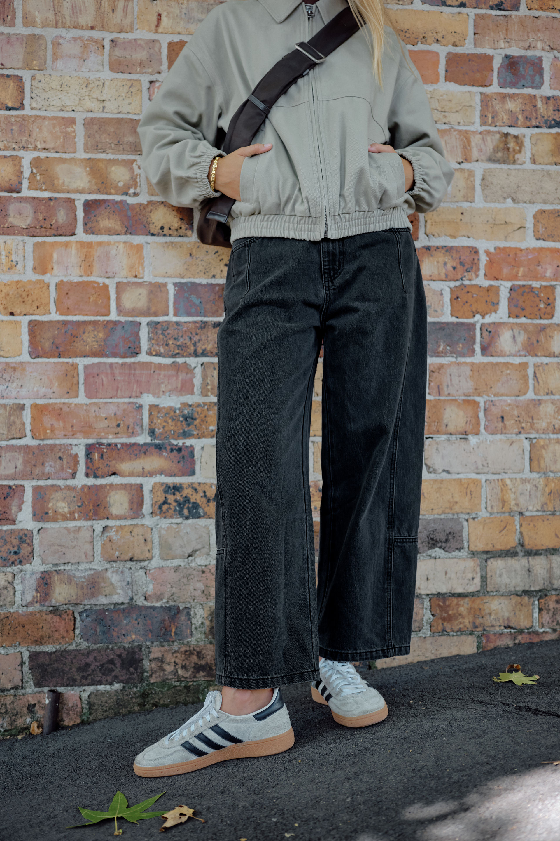Introducing the Darted Tapered Barrel Jean, made from heavy rigid denim with 30% recycled cotton. With a mid-rise fit and a tapered barrel leg that hits just above the ankle, these jeans offer a slightly cropped, flattering silhouette. The dart detailing on the front pockets and side panel seam add a touch of subtle style. Your new go-to for effortless, everyday cool.