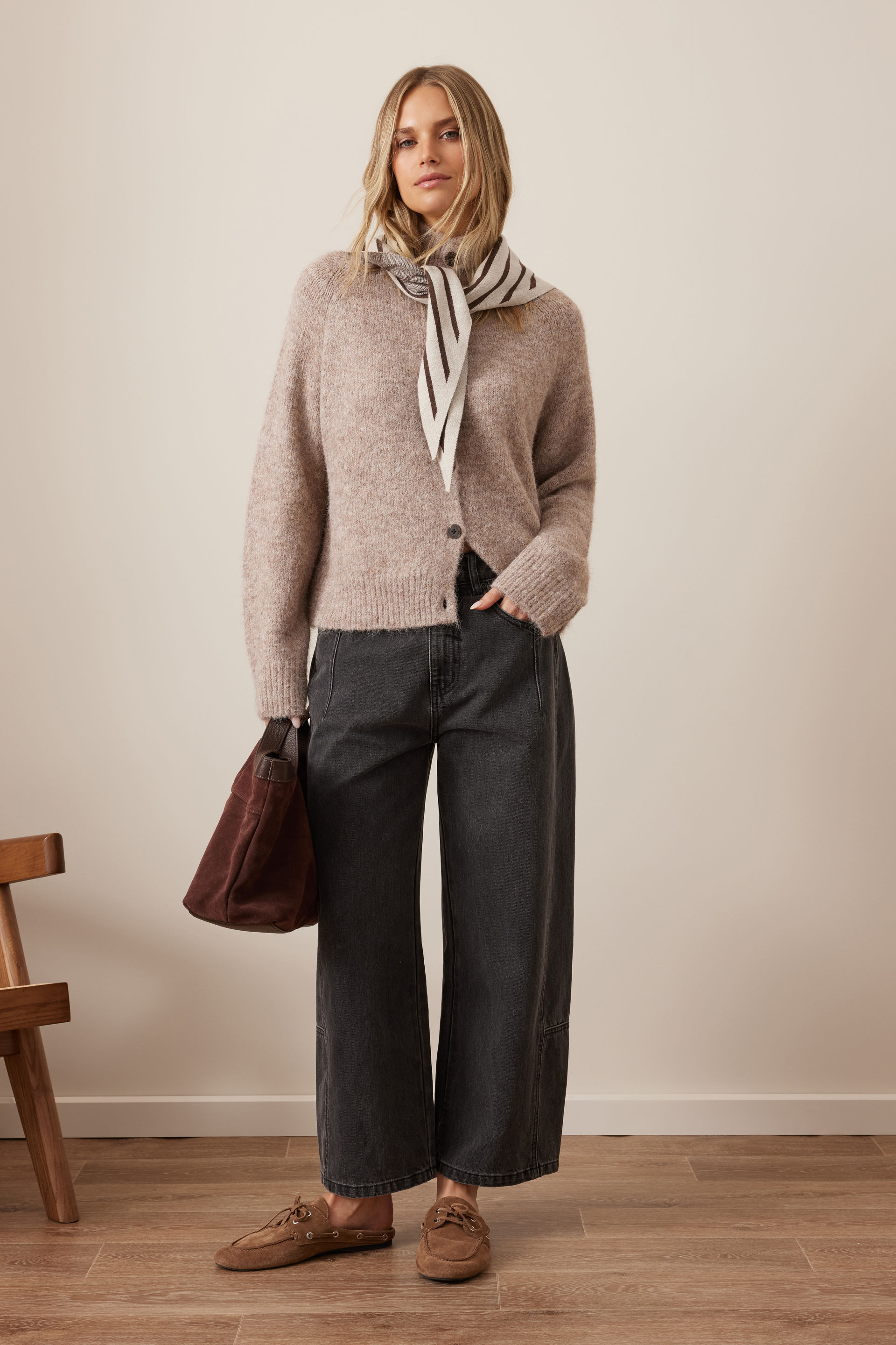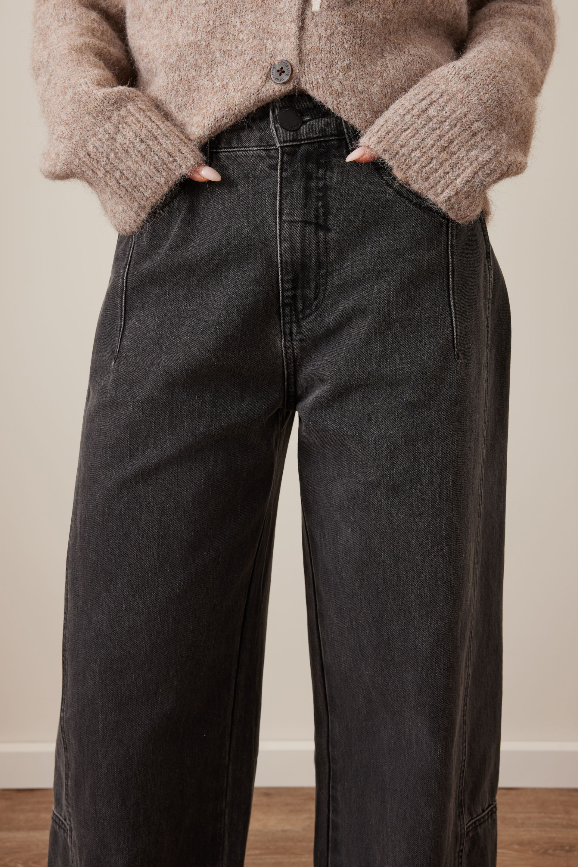 Introducing the Darted Tapered Barrel Jean, made from heavy rigid denim with 30% recycled cotton. With a mid-rise fit and a tapered barrel leg that hits just above the ankle, these jeans offer a slightly cropped, flattering silhouette. The dart detailing on the front pockets and side panel seam add a touch of subtle style. Your new go-to for effortless, everyday cool.