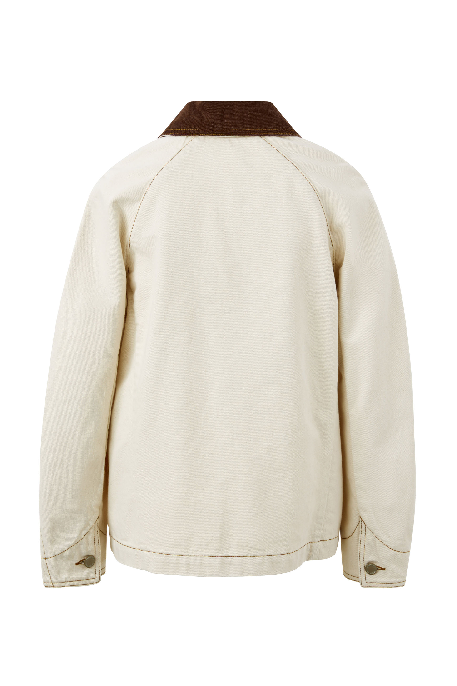 Introducing the Denim Barn Jacket, your new go-to for classic cool vibes, crafted from rigid denim blended with 18% recycled fibres. Featuring a natural ecru rinse wash and details like patch pockets, side seam pockets, and a hidden inner pocket – this boxy fit jacket with a contrast collar and stitch detail is elevated casual style at its finest. Hip-length and effortlessly chic, this jacket is a must-have for your wardrobe rotation.