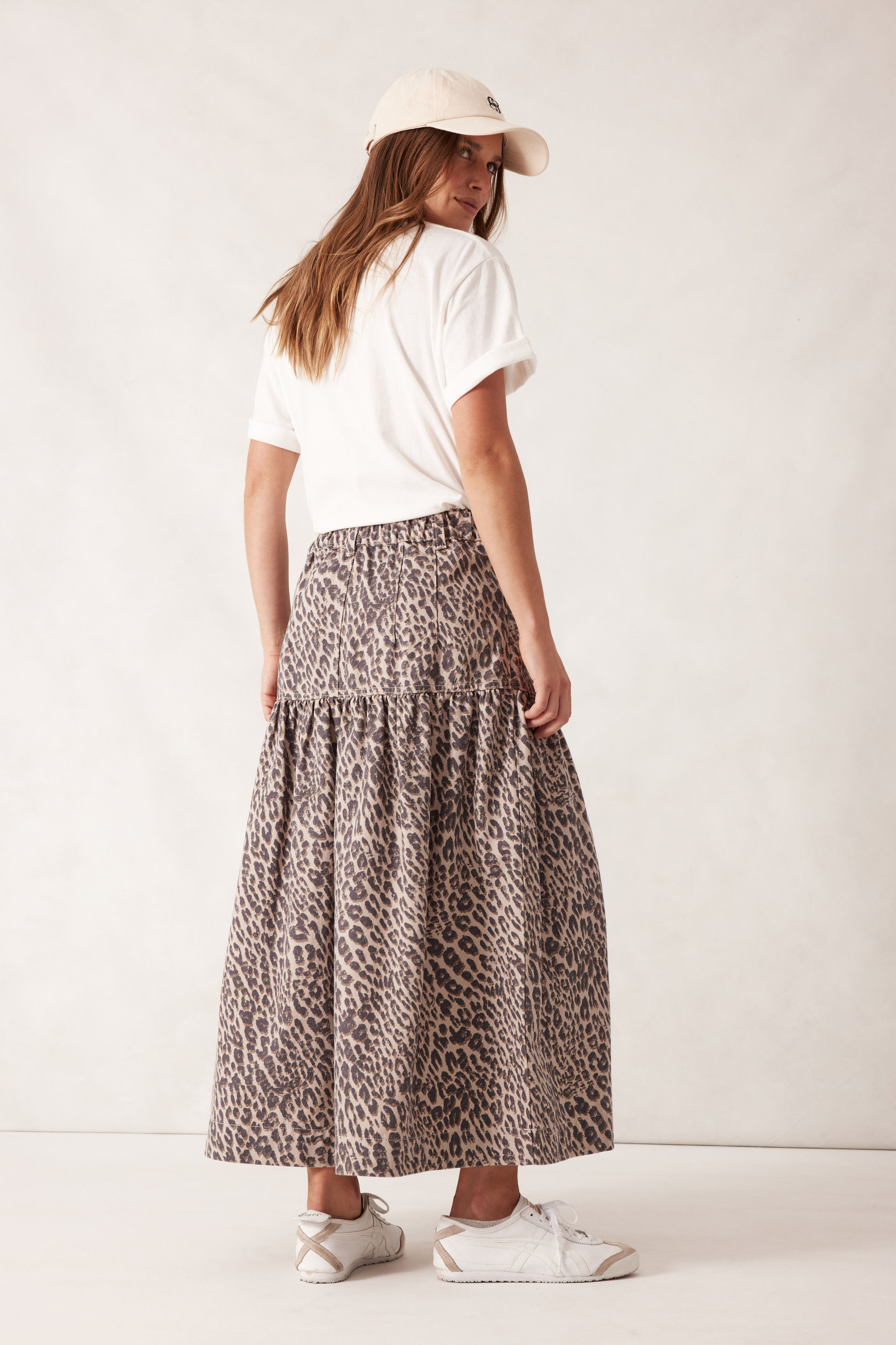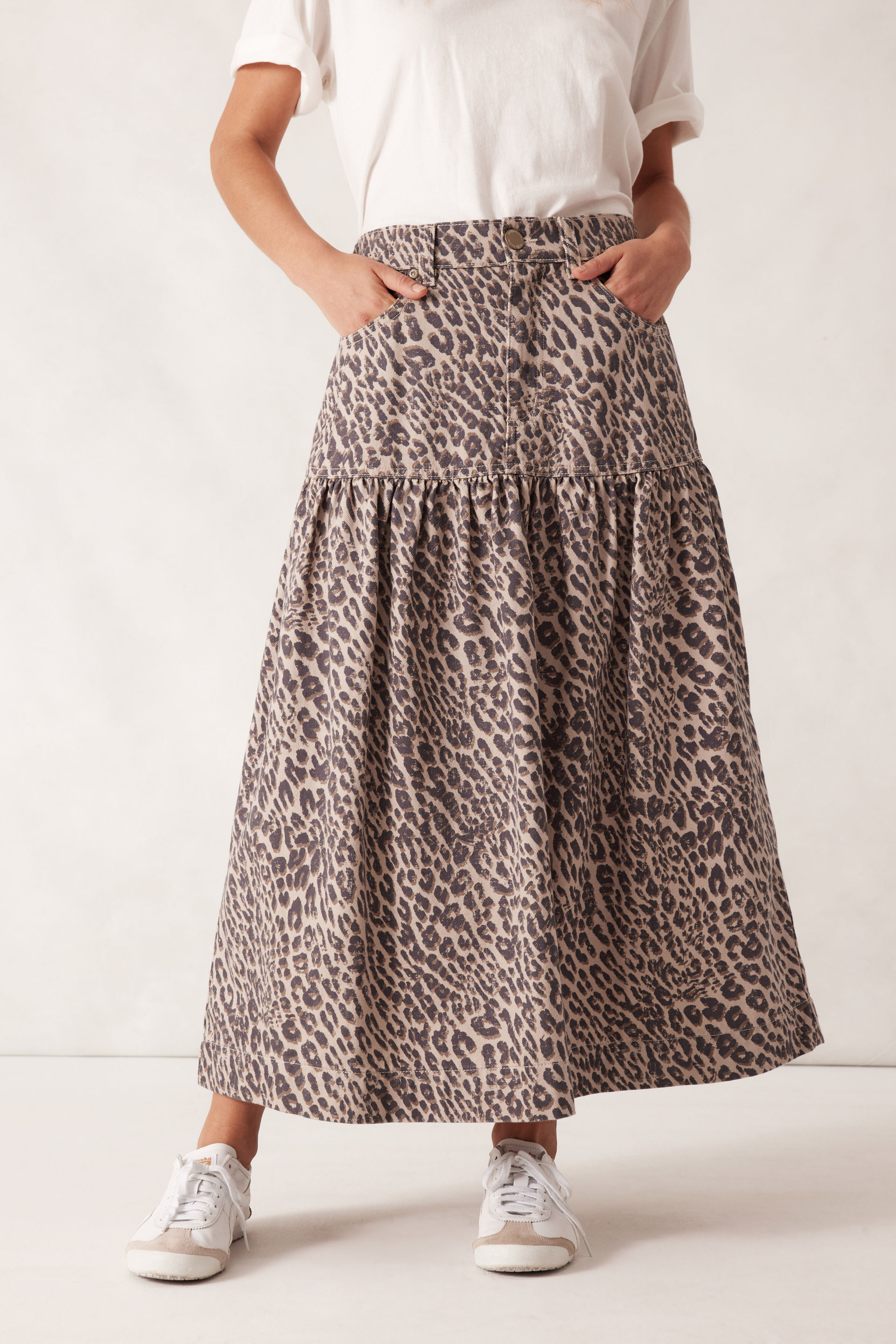 Our Drop Waist Denim Midi Skirt is crafted from crafted from a cotton/lyocell blend. This skirt offers all-day comfort with its elastic back waist, front pockets with dart details, a wide hem and a dropped yoke with a gathered seam. Pair it with a relaxed tee and your favourite sandals for the perfect laid-back summer look.