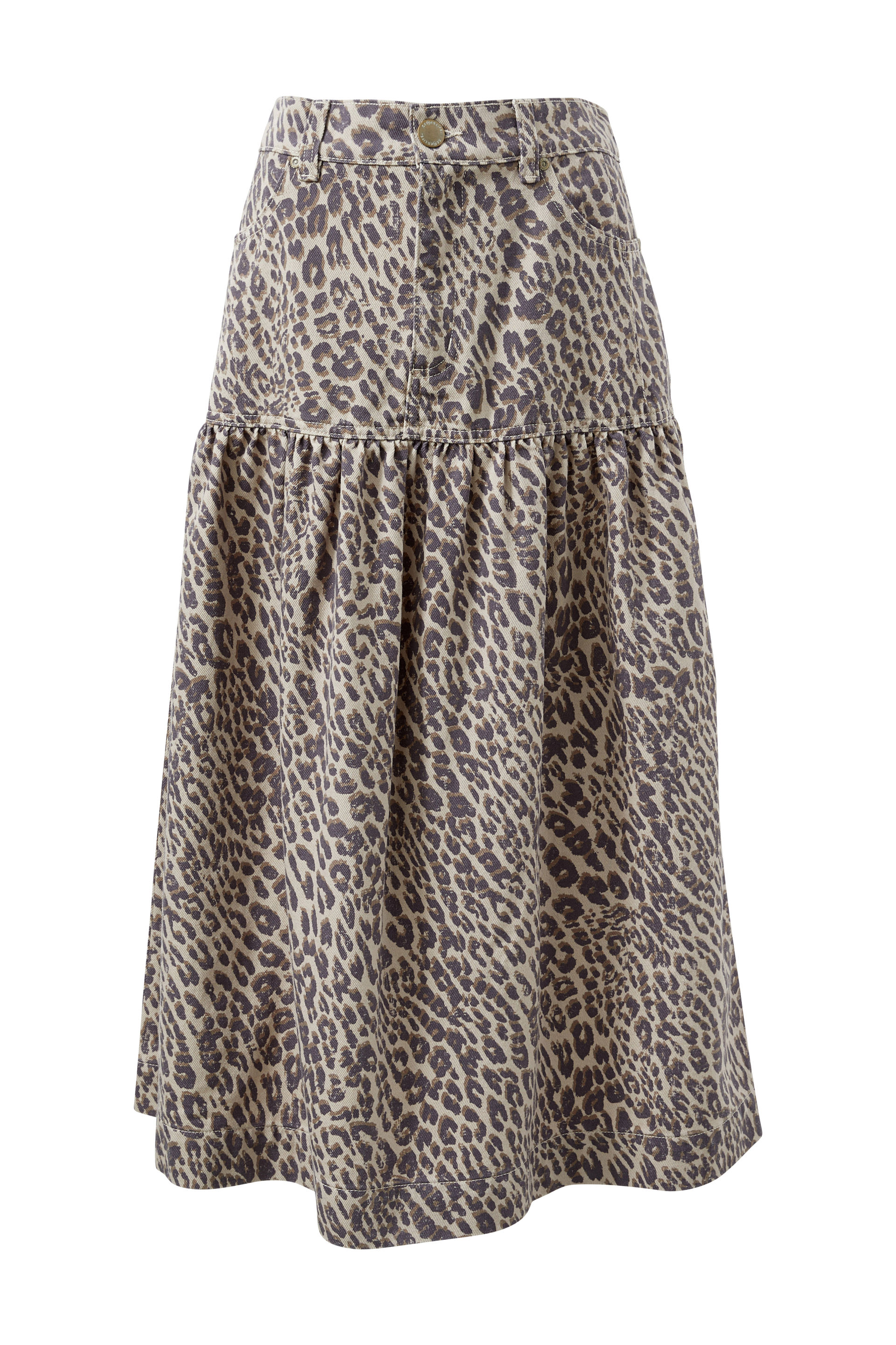 Drop Waist Denim Midi Skirt