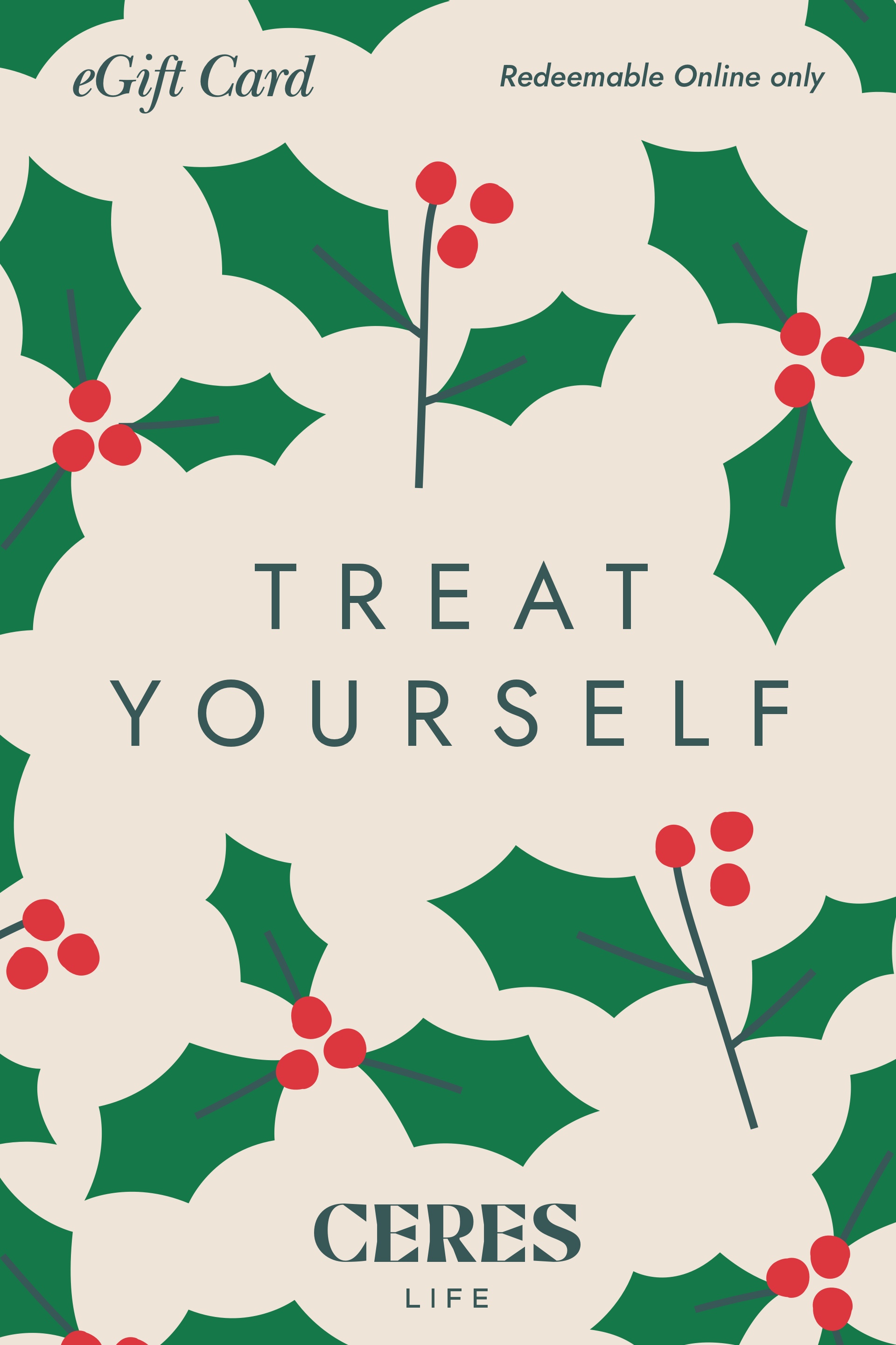 Along with a personalised message, your E-Gift Card will be emailed to your recipient straight away! E-Gift Cards can be redeemed online at cereslife.com and there's no expiry date!