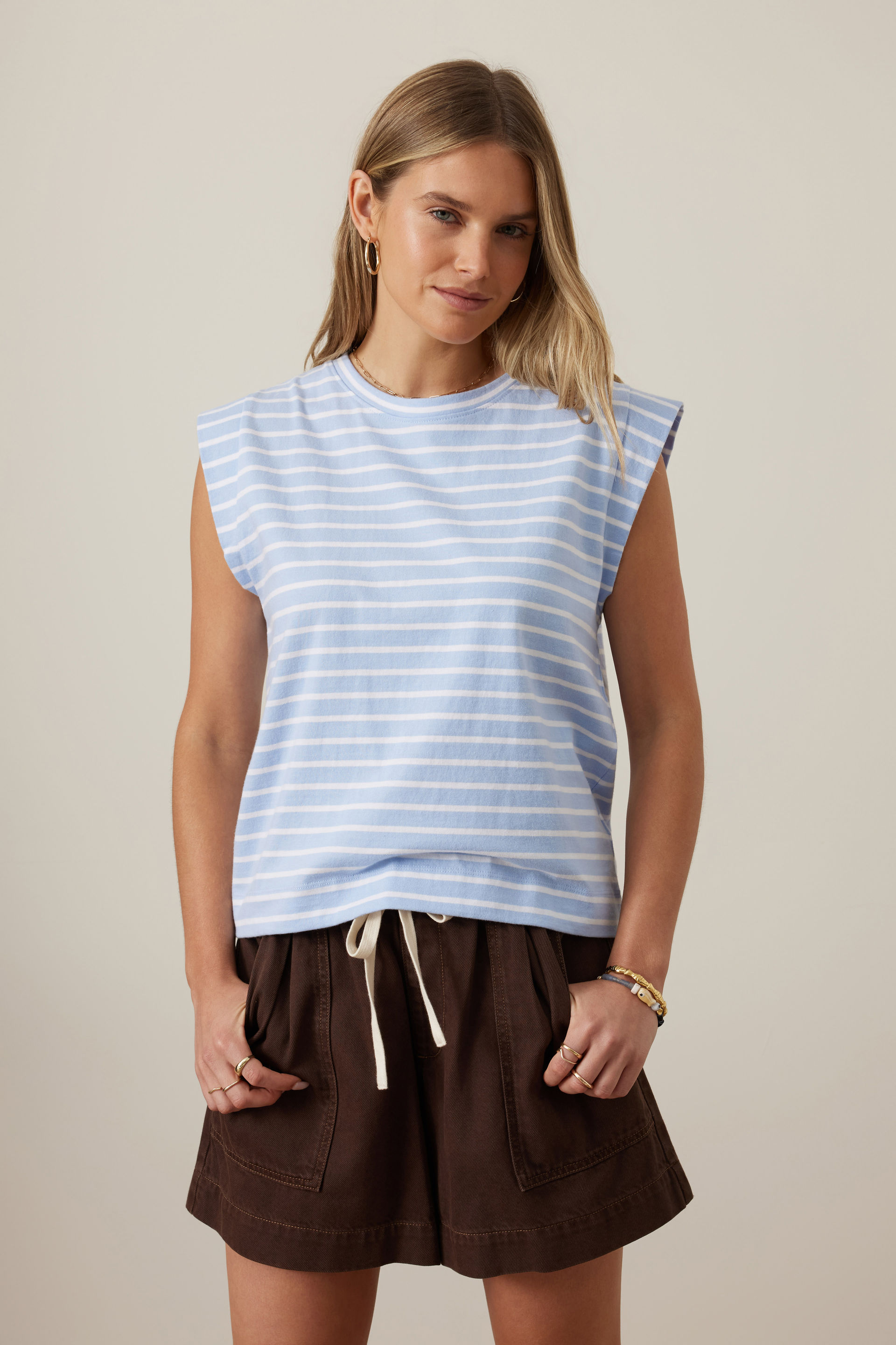 Say hello to your new go-to with our Extended Shoulder Tee. Made with 100% Australian Cotton, it's the ultimate classic. The regular fit, small cap sleeve and soft hand feel give it the perfect balance of chic and comfort. Whether it's for lounging or layering, this tee is ideal for any occasion. Get ready to look effortlessly chic with this wardrobe essential.