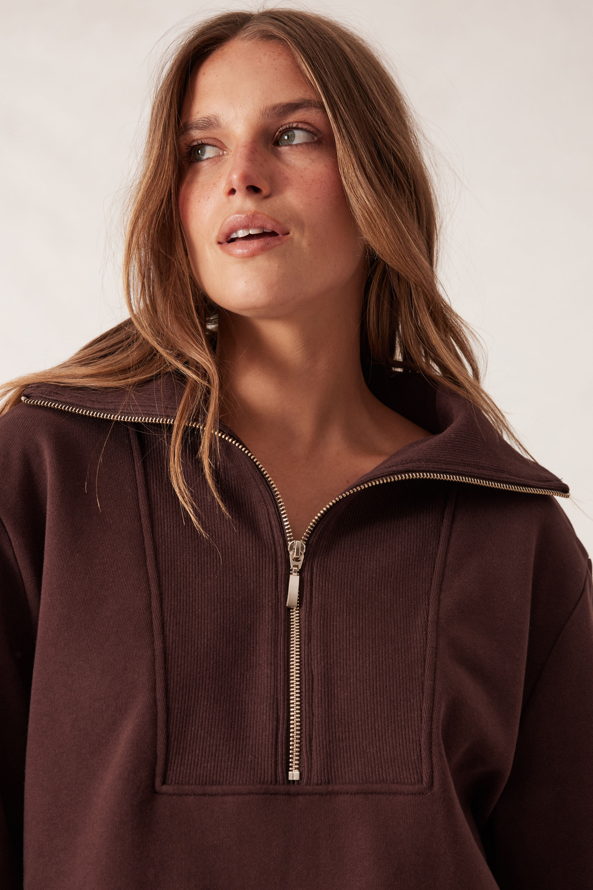 Get ready to cosy up in style with our Half Zip Sweat. Made from an organic cotton blend, this loopback beauty offers a slouchy fit that's all about comfort. The half zip adds a touch of laid-back charm, while the silver zipper elevates the look. Stay cosy and stylish - lounge, relax, and stay comfy in this everyday essential.