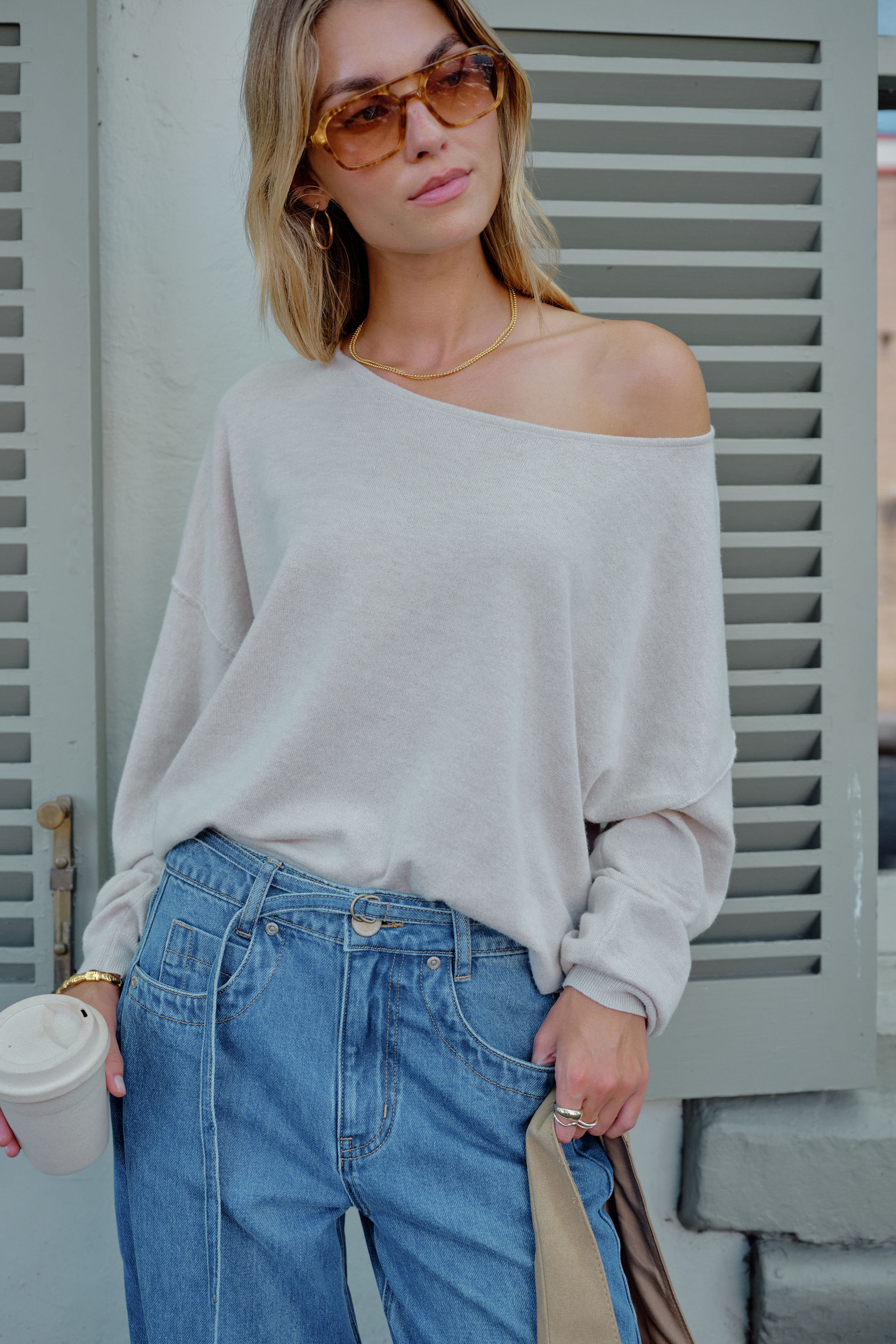 Meet the Liza Drapey Soft Knit – a versatile go-to for everything from brunches to cosy date nights. Its relaxed, drapey fit and soft touch make comfort look effortlessly stylish. Wear it off-shoulder or pulled up for classic charm.
