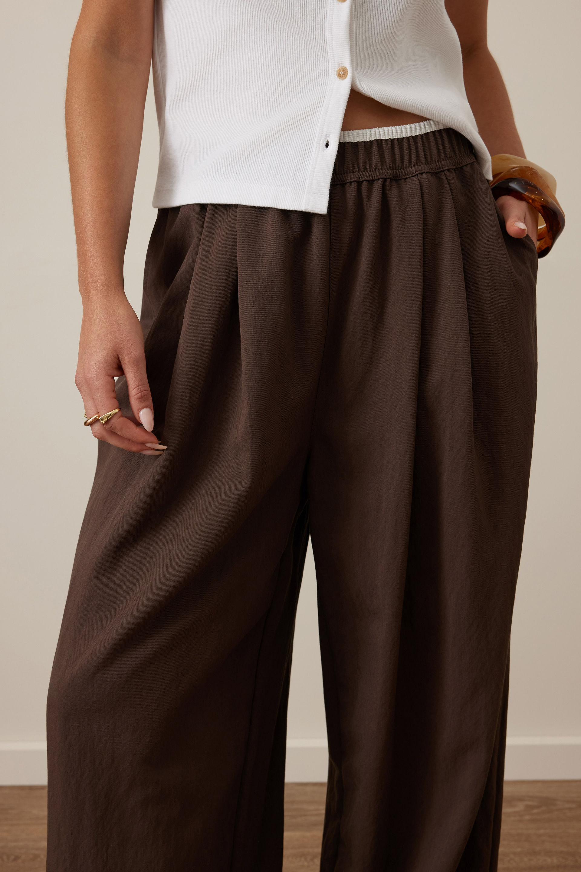 The Mim Pleat Pant is made from a lightweight lyocell blend, offering a soft touch and just the right drape to move with your busy days. With a pull-on elastic waistband, front pleats, and a relaxed barrel leg, it’s effortless style that feels as good as it looks.