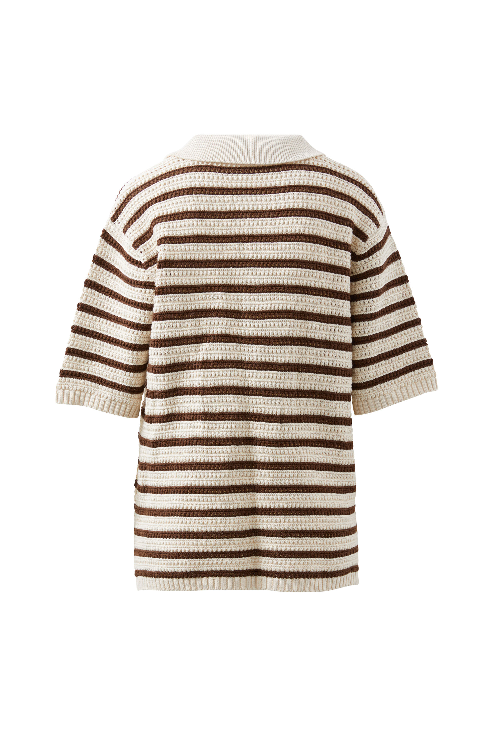 Meet our Molly Textured Stripe Short Sleeve Knit Tunic. Made from 100% Organic Cotton, its textured knit stitch adds a touch of understated style. Featuring a relaxed slouchy fit, side splits, and an open placket for easy styling. Pair back with the Molly Textured Knit short for an easy outfit or your favourite denim for elevated styling.