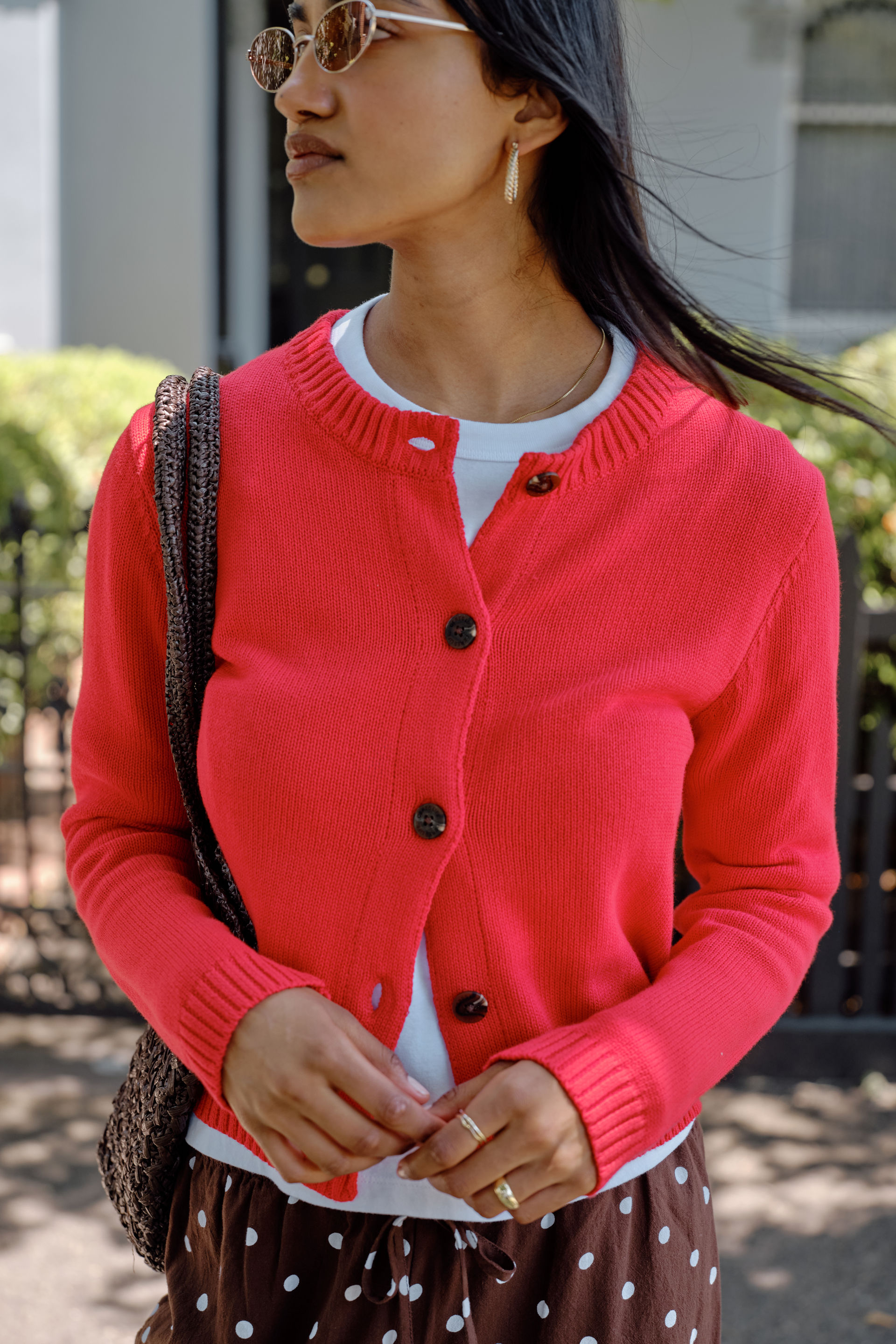 Nelly Long Sleeve Knit Cardi, FIERY RED