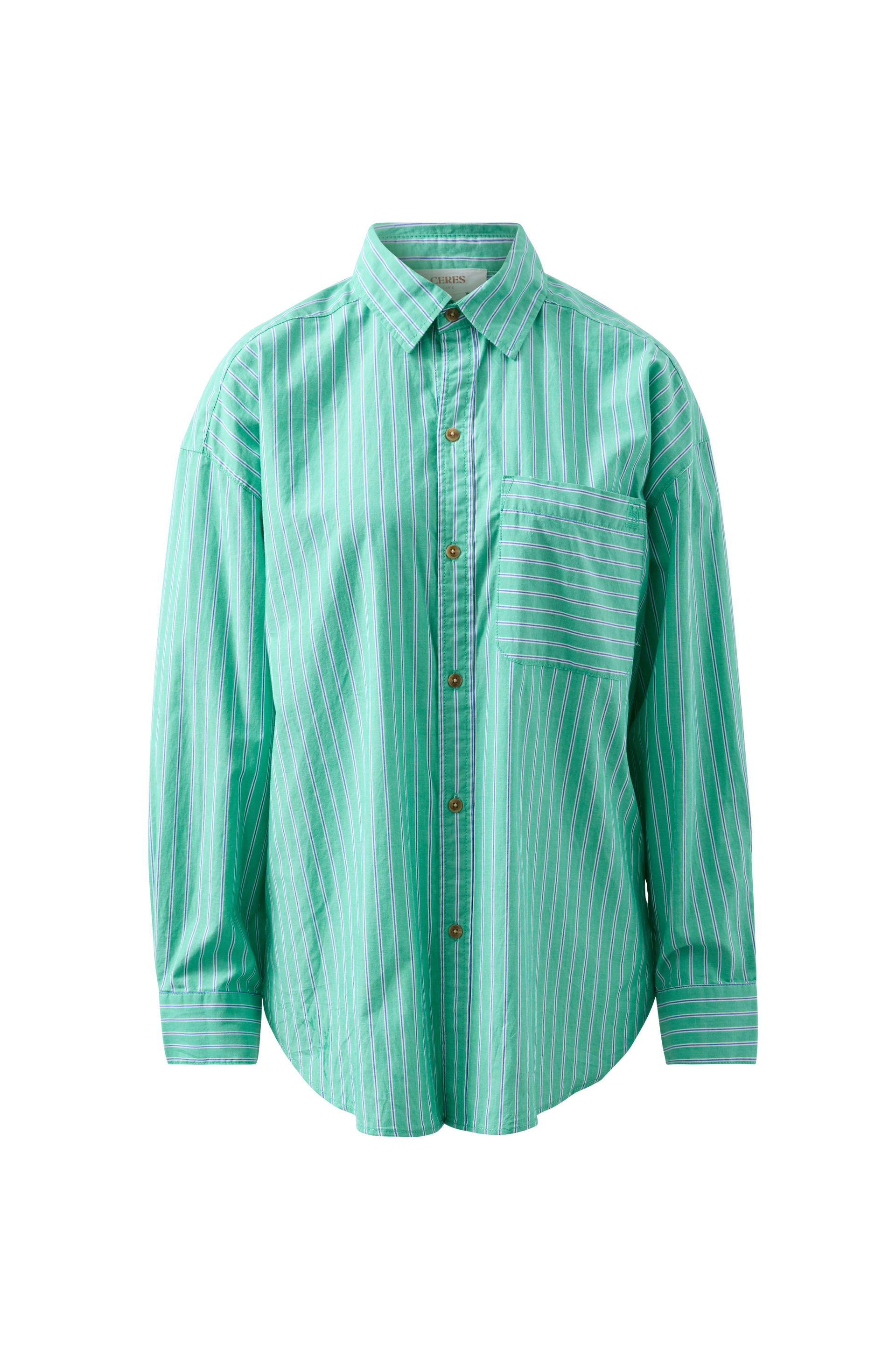 The team favourite, the Oversized Poplin Shirt is intentionally designed in a relaxed fit with a drop shoulder and oversized chest pocket. Crafted from a light weight, cool on the skin, organic cotton finished with considered details including knife pleats at cuff, forward shoulder seams and mid-weight top stitching throughout. Effortlessly pair with your favourite wide leg denim for an everyday look. You'll have this piece on high rotation year round.