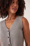 Elevate your casual style effortlessly with our Rib Knit Vest – a versatile layering essential that exudes comfort and chic vibes. Crafted from post-consumer recycled yarn with a rib stitch design for a stretchy, soft, and cozy feel, this vest comes with functional buttons. Pair it under your favourite blazer to start a stylish day ahead.