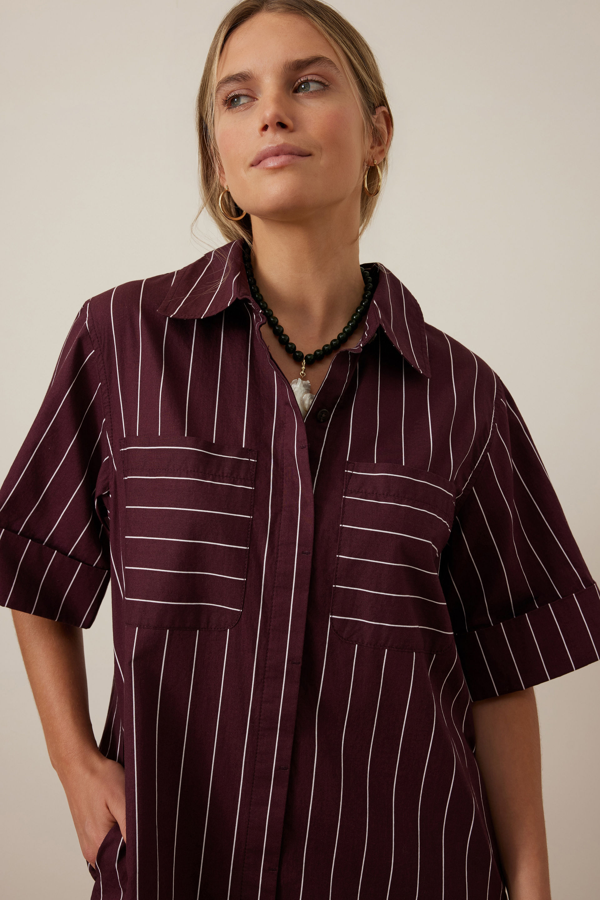 Introducing the Sara Mini Shirt Dress – an easy wear, comfy dress for everyday wear. Crafted from organic cotton poplin, it features a relaxed fit, convenient side seam pockets, embroidery on the front chest pocket, and a subtly chic slightly curved collar point. With an above knee length and curved shaped hem this dress effortlessly blends casual and chic for a versatile wardrobe staple.