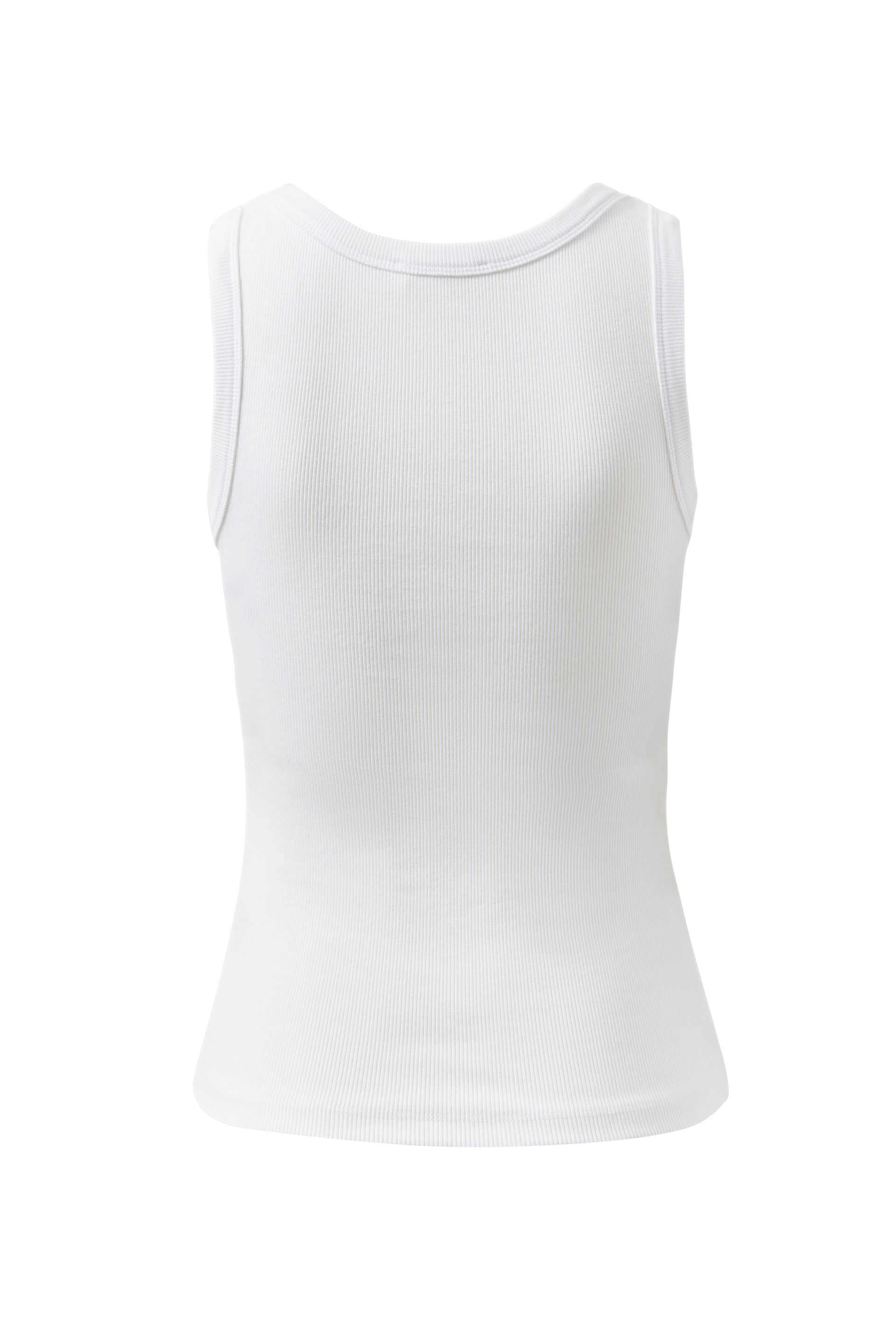 Zoe Contour Rib Scoop Tank, WHITE/BLACK MONOGRAM EMBROIDERY