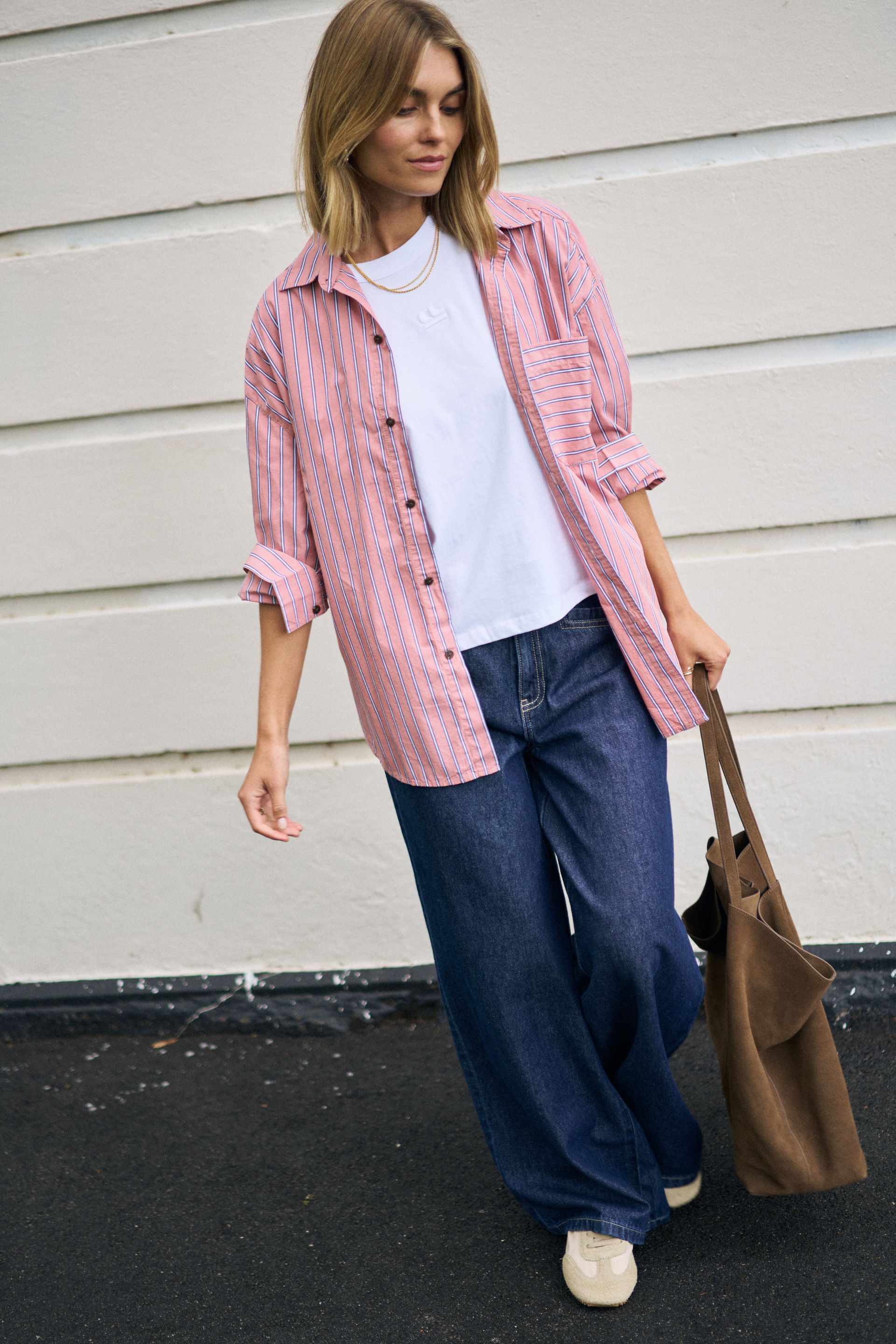 The team favourite, the Oversized Poplin Shirt, is intentionally designed in a relaxed fit with a drop shoulder and oversized chest pocket. For this colour we have used a finer organic cotton poplin to intensify the colours in the stripes, giving it a luxurious sheen. It’s finished with thoughtful details like knife pleats at the cuffs, forward shoulder seams, and mid-weight topstitching throughout.