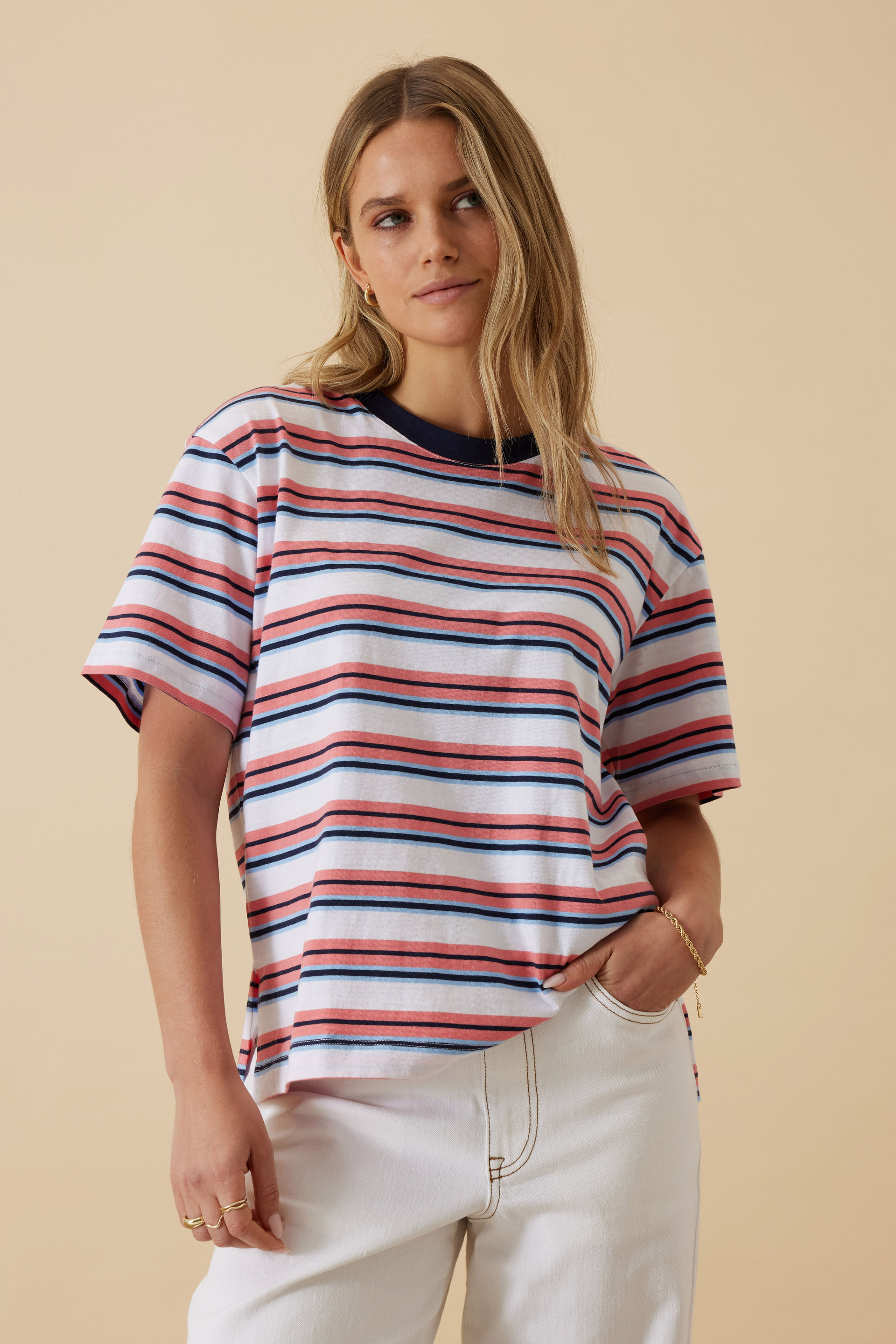 Stevie Slouchy Tee, WASHED CORAL/NEW NAVY STRIPE