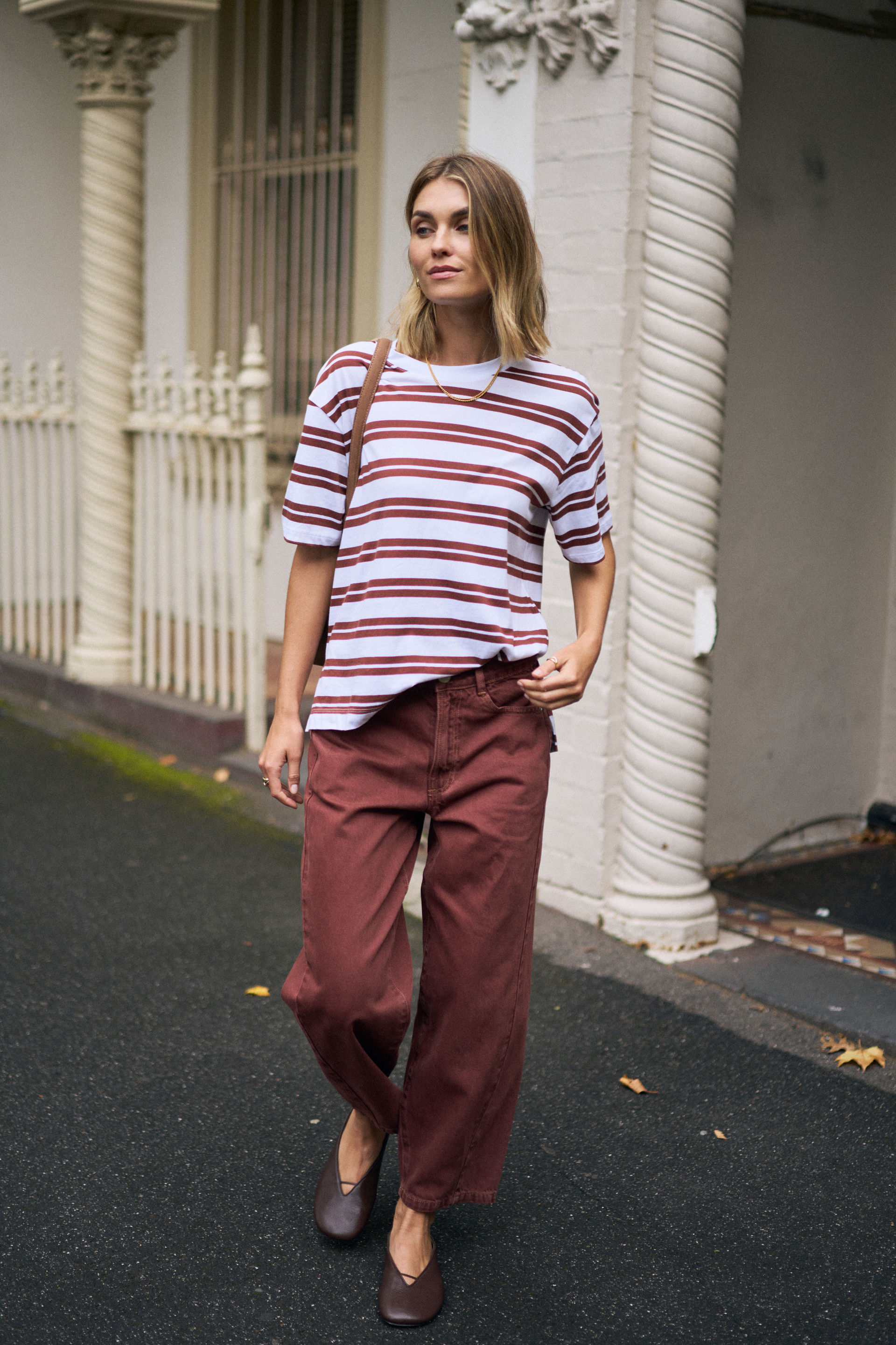 Stevie Slouchy Tee, WHITE/BURNT TOFFEE STRIPE