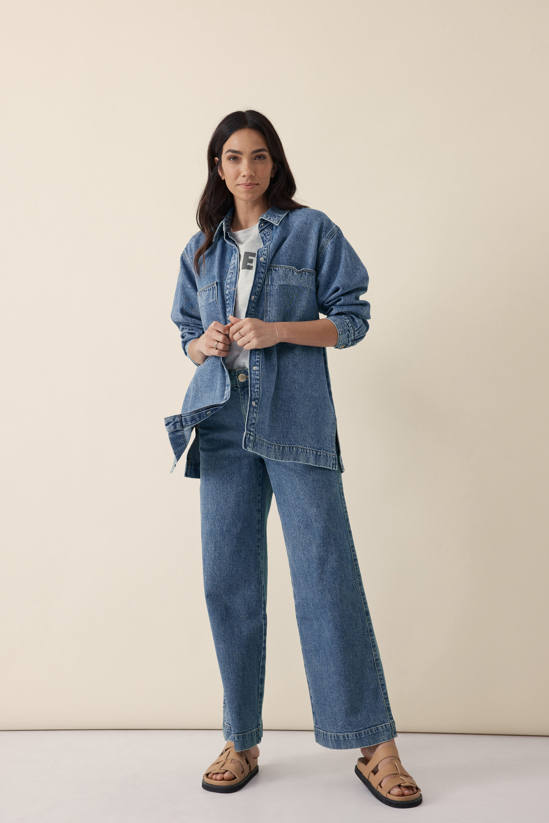 Introducing our Longline Denim Shacket - for that effortlessly cool and versatile look. Made using mid-weight rigid denim that feels soft to the touch, this shacket is crafted from 100% organic cotton. With a concealed metal snap button front and cuff, it's easy to wear and style. The longer length and side split creates a laid-back look, while the notched front pockets and back yoke add subtle styling details.