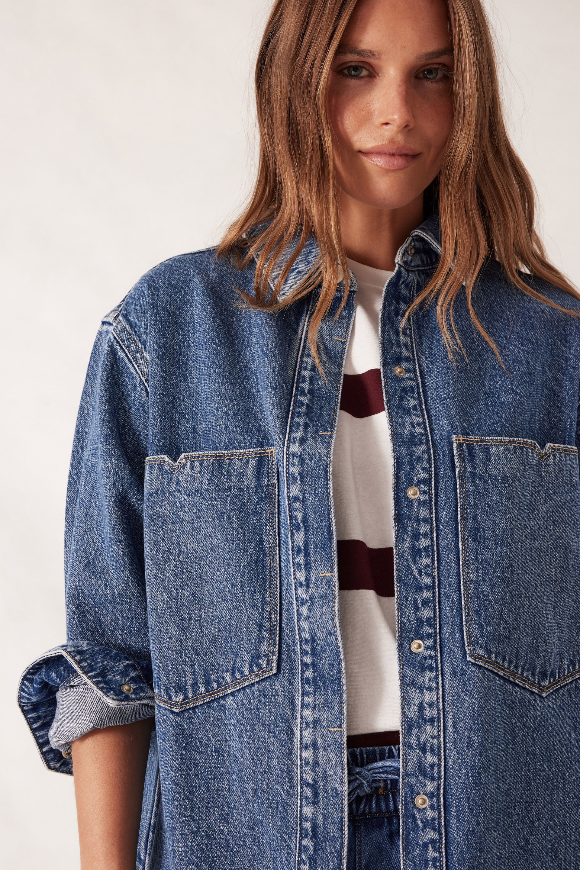 Goldie Longline Denim Shacket, FRESH INDIGO