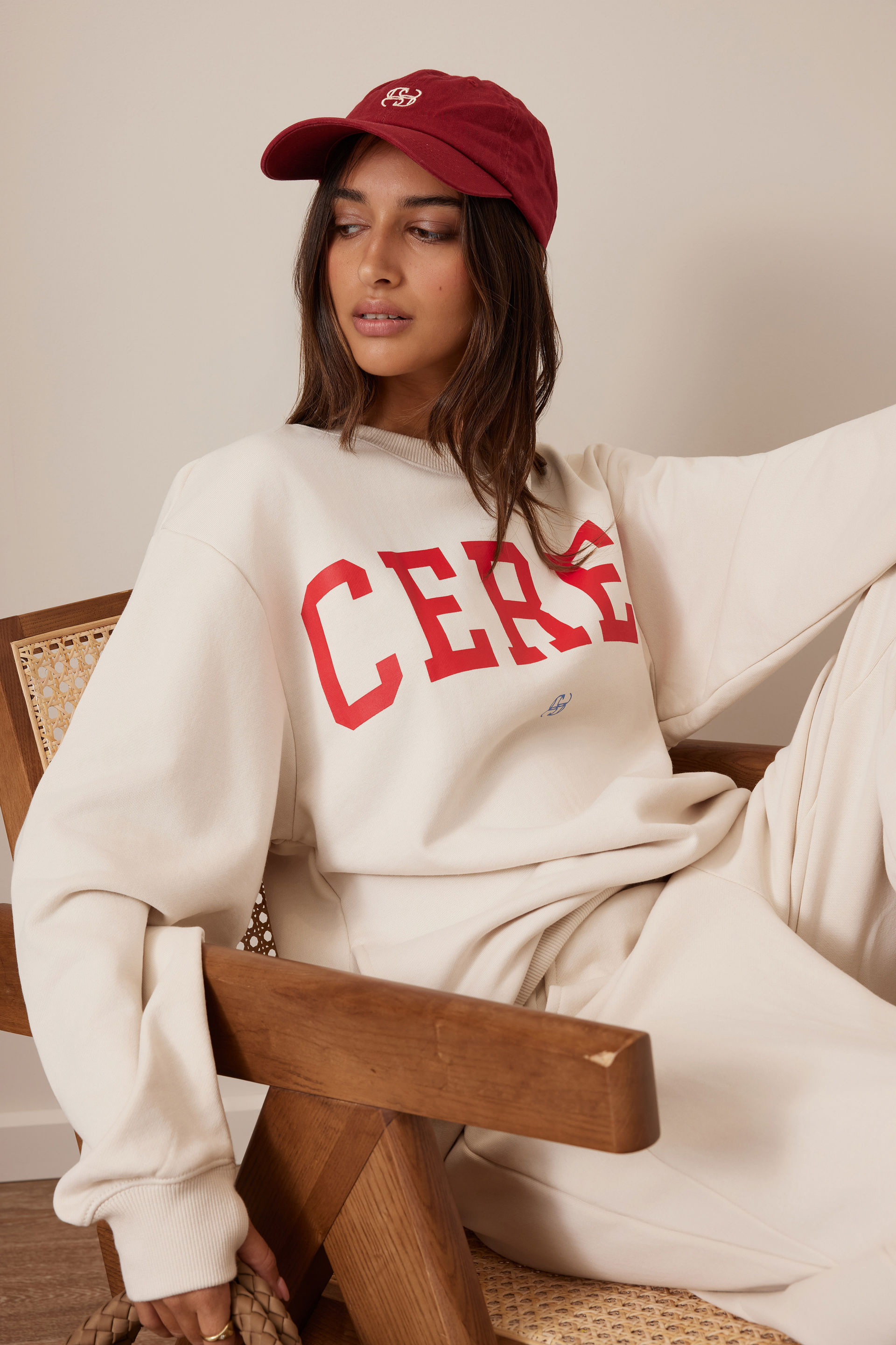 Isla Oversized Slouchy Crew, BUFF FIERY RED HERITAGE LOGO