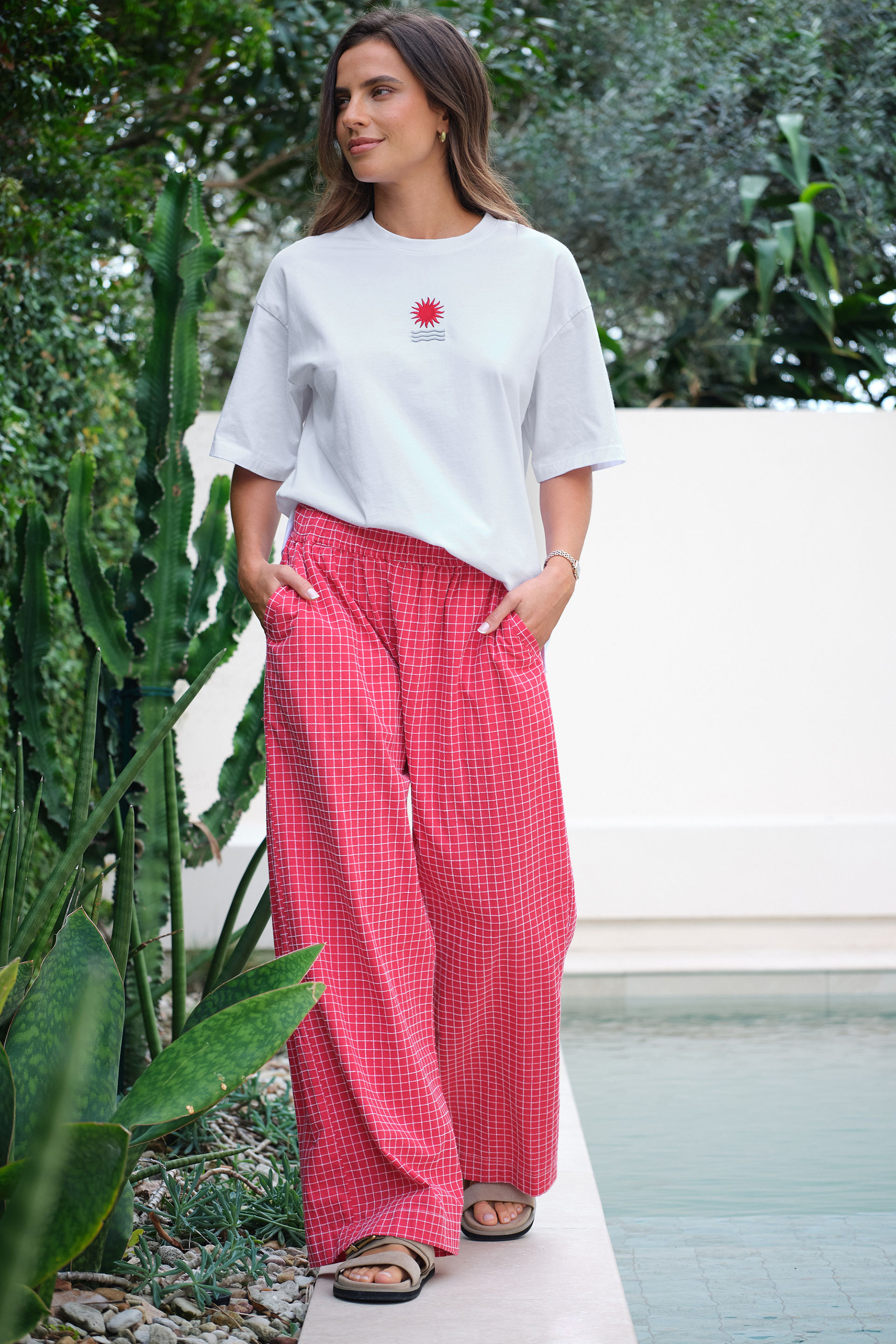 Meet our Lounge Pant – crafted for laid-back days. Made from 100% textured organic cotton , these pants feature an elasticated waist for ultimate comfort. With pockets in the side seam, a flattering wide leg and relaxed styling, perfect for those easy going days when you want to look chic without sacrificing comfort.