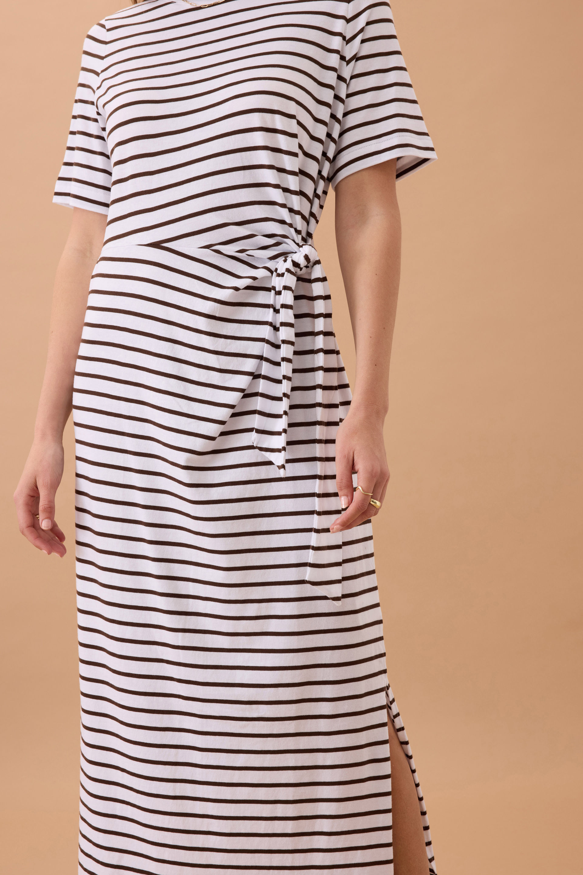 Meet the Allora Tie Midi Tee Dress—your new effortless go-to. With a body-skimming fit and a mock tie waist that flatters without fuss, while feeling just like your favourite tee. Perfect for busy days when comfort and confidence need to go hand in hand- your grab-and-go outfit solution!