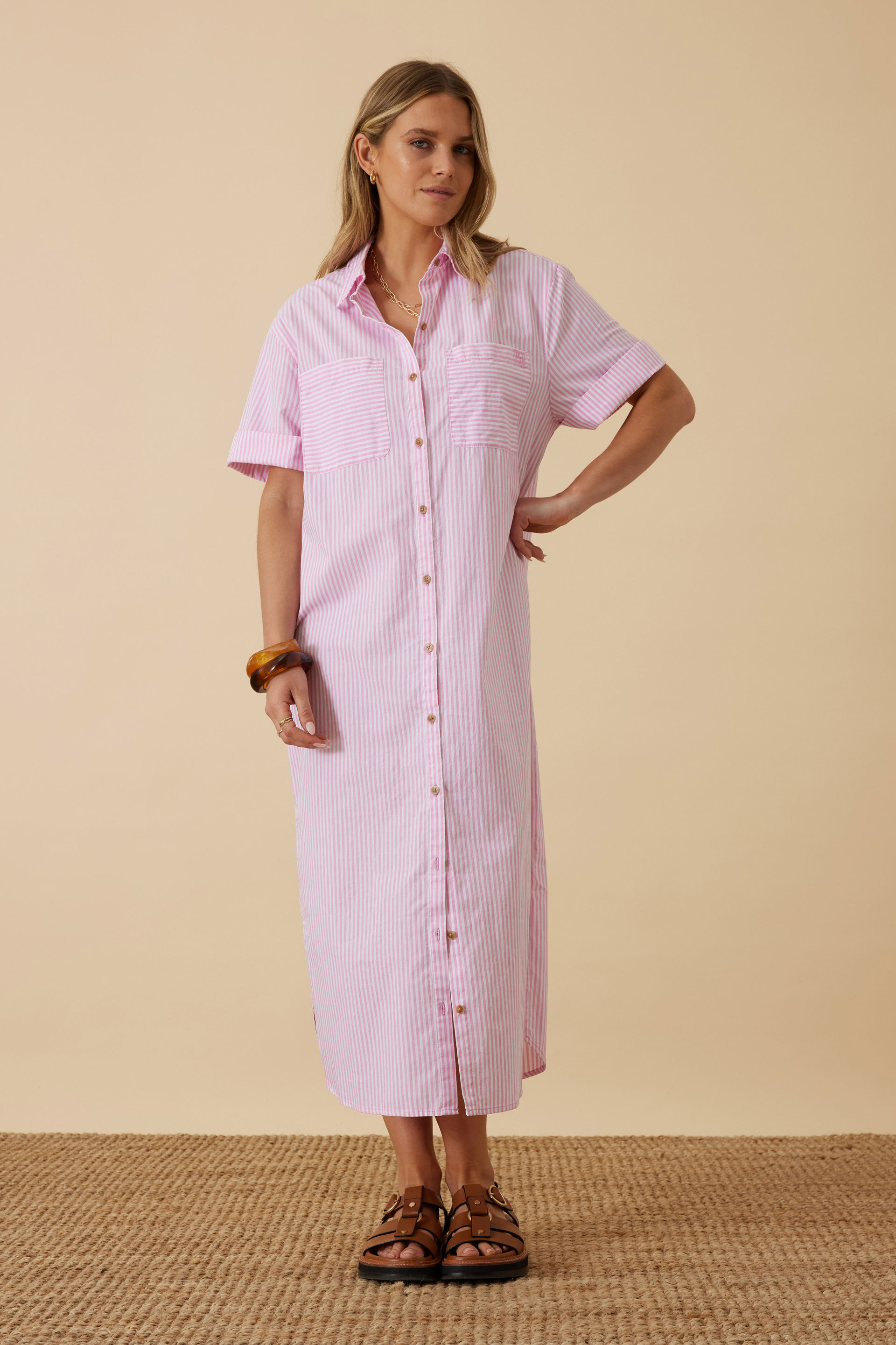 Hanna Midi Shirt Dress, HIBISCUS PINK STRIPE