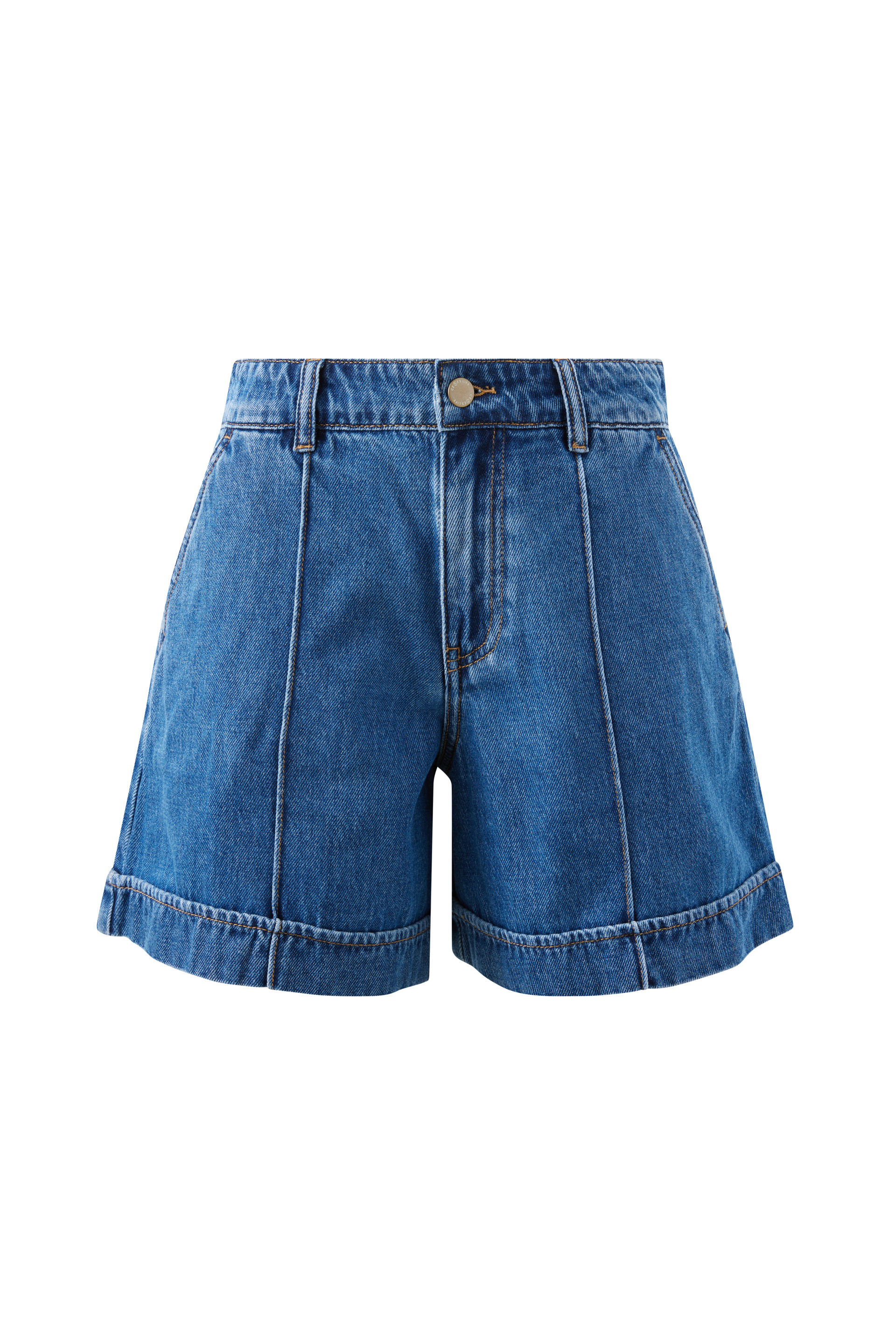 Meet the Juno Seamed Short crafted from a mid-weight 100% organic cotton denim. Featuring a mid-thigh length and front pintucks, angled front pockets and back patch pockets for effortless style. Finished with a neat faux cuff hem, it’s the perfect blend of cool and comfortable style for sunny days.