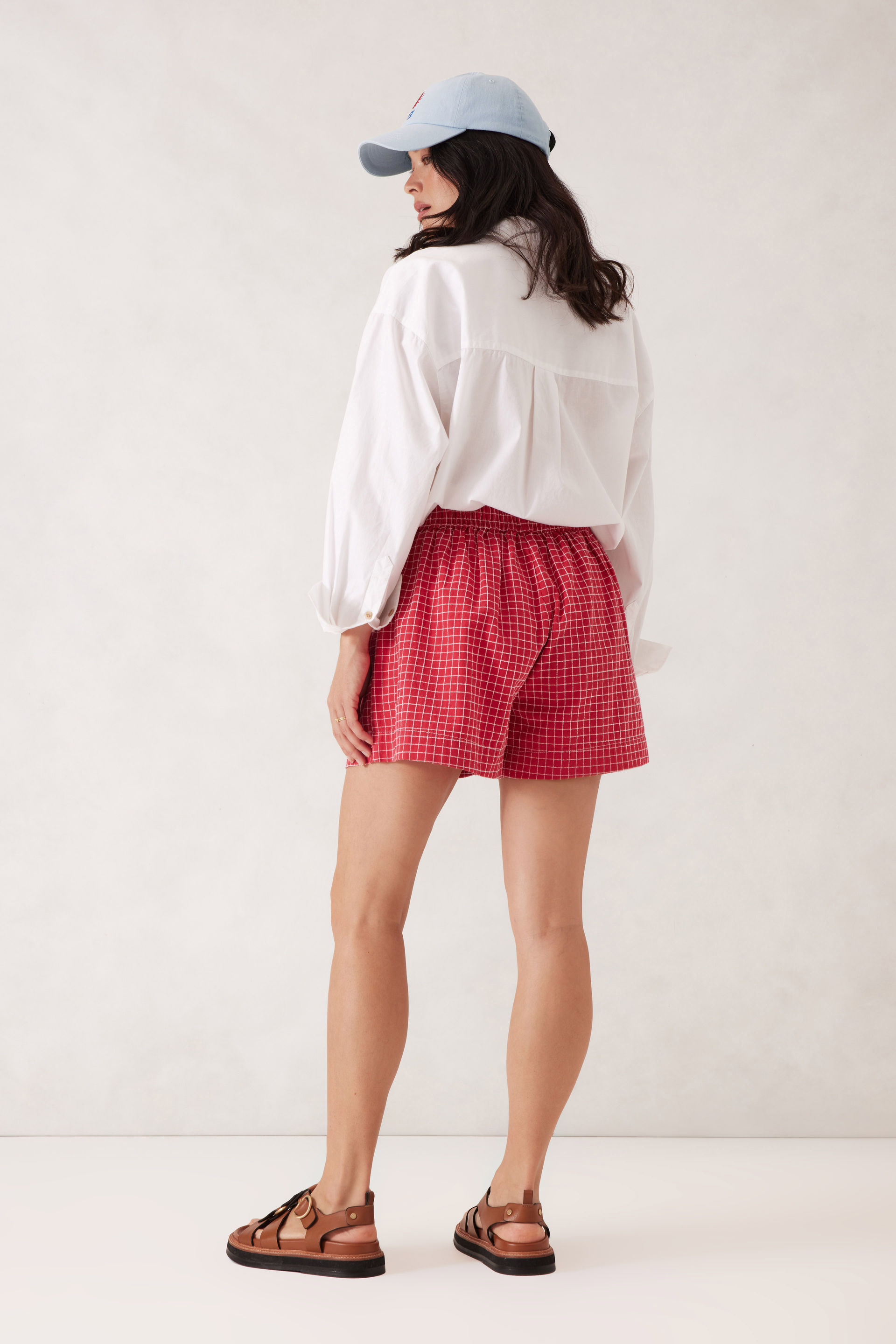 Meet the Lounge Short – crafted for laid-back days. Made from 100% organic textured cotton , these shorts feature an elasticated waist for ultimate comfort. With pockets in the side seam, mid-thigh length and relaxed styling, you've got your go-to piece for effortless lounging in style.