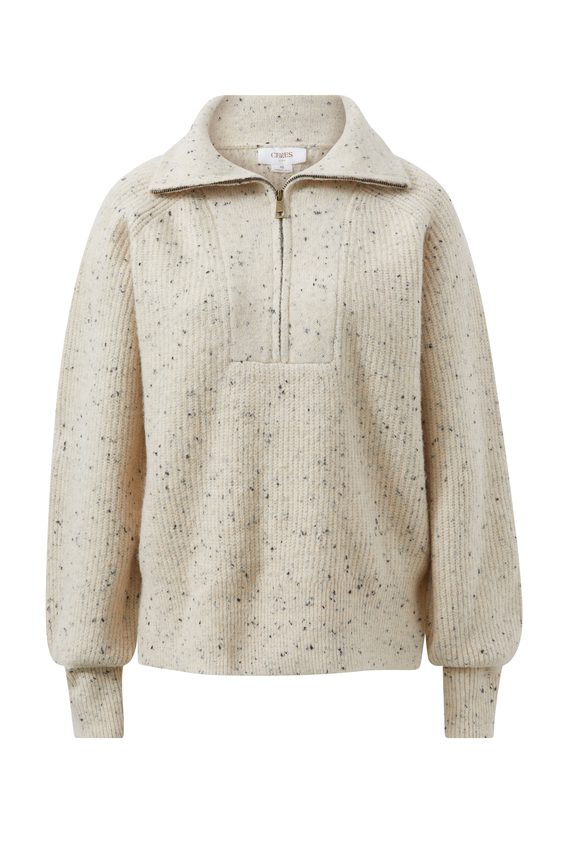 Slouchy Zip Knit, CREAM NEP