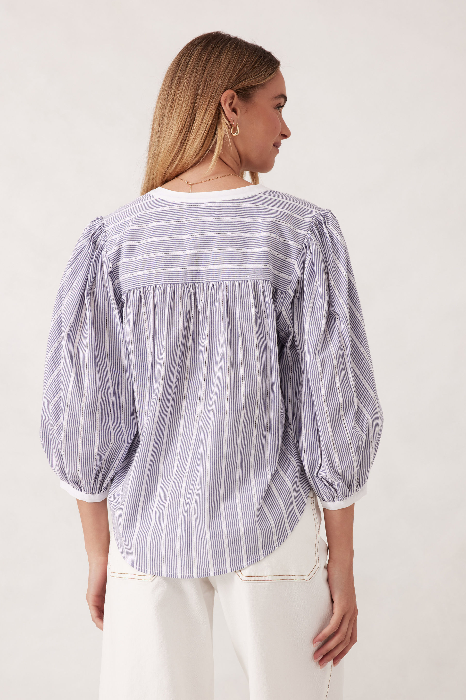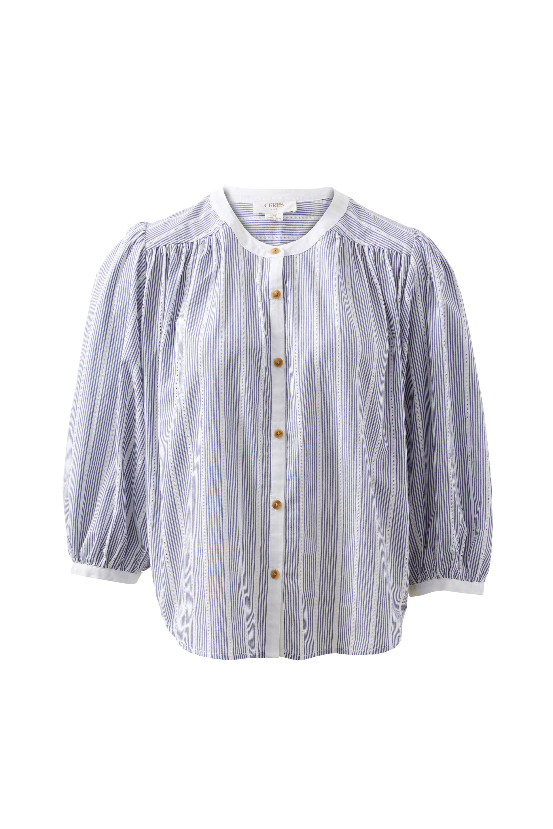 Introducing our woven collarless top – the perfect mix of comfort and style. Made from lightweight textured cotton, this relaxed fit top features a button-through design and subtle gathering at the front and back yoke. Pair back with your favourite denim and sandals for an elevated summer look.
